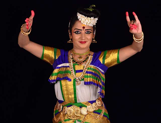 Gayathri turned her specialization to “Keralanatanam” the art form crated by the Legend Natanakalanidhi Sri.Guru Gopinath and attained “nadanabhooshanam” from Sree Swathithirunal Govt. College of Music, Trivandrum. She continues her experiments and research in keralanatam, while analyzing its close proximity to Philosophy and Aesthetics. She also gives Authentic and Classical Dances. Gayathri presently performs Keralanatanam and Bharathanatyam